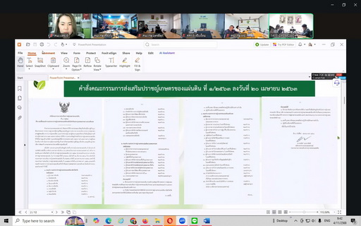 วันที่ 4 พฤศจิกายน 2568 เวลา 9.30 น. นางสาวเสาวลักษณ์ ศุภกมลเสนีย์ ผู้ตรวจราชการกระทรวงเกษตรและสหกรณ์ เขตตรวจราชการที่ 17 เป็นประธานการประชุมคณะกรรมการสรรหาปราชญ์เกษตรของแผ่นดิน ระดับเขตตรวจราชการที่ 17 เพื่อพิจารณาการสรรหาปราชญ์เกษตรของแผ่นดิน ระดับเขต (เขตตรวจราชการที่ 17 ) ประจำปี พ.ศ.2569 ประกอบด้วย สาขาปราชญ์เกษตรเศรษฐกิจพอเพียง สาขาปราชญ์เกษตรดีเด่น และสาขาปราชญ์เกษตรผู้นำชุมชนและเครือข่าย โดยนางสาวณัฐสุดา วิปรวณิชย์ นักวิเคราะห์นโยบายและแผนชำนาญการ พร้อมด้วยเจ้าหน้าที่ส่วนยุทธศาสตร์ฯ ร่วมประชุมผ่านระบบการประชุมทางไกล Zoom Conference ณ ส่วนยุทธศาสตร์ฯ สำนักงานปศุสัตว์เขต 6