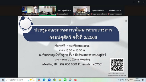 วันที่ 7 พฤศจิกายน 2568 นายพงษ์พันธ์ ธรรมมา รองอธิบดีกรมปศุสัตว์ เป็นประธานการประชุมคณะกรรมการพัฒนาระบบราชการ กรมปศุสัตว์ ครั้งที่ 2/2568 เพื่อพิจารณาแนวทางการประเมินส่วนราชการตามมาตรการปรับปรุงประสิทธิภาพในการปฏิบัติราชการของกรมปศุสัตว์ ประจำปีงบประมาณ พ.ศ.2569 และแนวทางการจัดทำคำรับรองการปฏิบัติราชการของหน่วยงานภายในกรมปศุสัตว์ ประจำปีงบประมาณ พ.ศ.2569 ในการนี้ส่วนยุทธศาสตร์และสารสนเทศการปศุสัตว์เข้าร่วมการประชุม ผ่านระบบประชุมทางไกล (zoom) ณ ห้องประชุมเหลืองหางขาว สำนักงานปศุสัตว์เขต 6 จังหวัดพิษณุโลก