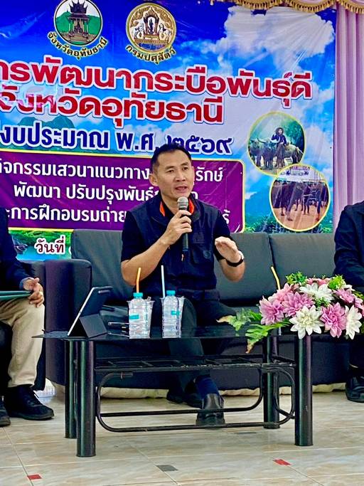 วันพุธที่ 17 ธันวาคม 2568 นายสัตวแพทย์ปราโมทย์ ค่ายชัยภูมิ ผู้อำนวยการส่วนมาตรฐานการปศุสัตว์ เป็นผู้แทนสำนักงานปศุสัตว์เขต 6 ในการเป็นวิทยากรร่วมเสวนาในโครงการพัฒนากระบือพันธุ์ดี จังหวัดอุทัยธานี โดยได้ให้ข้อแนะนำในการดูแลสุขภาพกระบือ การควบคุมป้องกันโรค และการยกระดับฟาร์มมุงสู่ระบบมาตรฐานฟาร์มกระบือ (GAP)