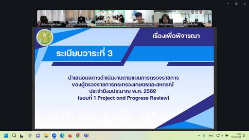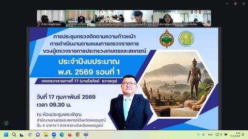 วันที่ 17 กุมภาพันธ์ 2569 นายโสภัชย์ ชวาลกุล ผู้ตรวจราชการกระทรวงเกษตรและสหกรณ์ เขตตรวจราชการที่ 17 เป็นประธานการประชุมการตรวจติดตามความก้าวหน้าผลการดำเนินงานตามแผนการตรวจราชการของผู้ตรวจราชการกระทรวงเกษตรและสหกรณ์ ประจำปีงบประมาณ พ.ศ. 2569 รอบที่ 1 จังหวัดเพชรบูรณ์ เพื่อตรวจราชการและให้ข้อคิดเห็น/ข้อเสนอแนะในการตรวจติดตามงานโครงการตามแผนการตรวจราชการของผู้ตรวจราชการกระทรวงเกษตรและสหกรณ์ โดยมีนายสัตวแพทย์ ดร. เทวัญ รัตนะ ปศุสัตว์เขต 6 และเจ้าหน้าที่ส่วนยุทธศาสตร์และสารสนเทศการปศุสัตว์เข้าร่วมประชุมผ่านระบบการประชุมทางไกล Zoom Conference ณ ห้องประชุมบางแก้ว สำนักงานปศุสัตว์เขต 6 อำเภอเมือง จังหวัดพิษณุโลก