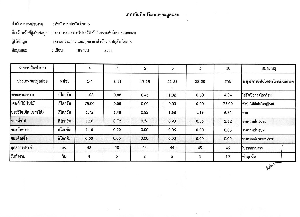 * รายงานการคัดแยกขยะ สำนักงานทรัยากรธรรมชาติและสิ่งแวดล้อม จังหวัดพิษณุโลก