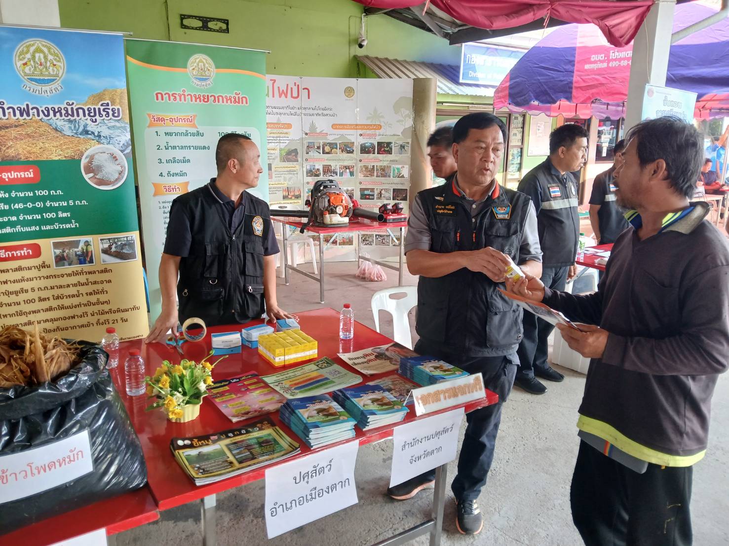 วันที่ 4 มีนาคม 2569 นายสุชาติ หมอกยา ปศุสัตว์จังหวัดตาก มอบหมายให้กลุ่มส่งเสริมและพัฒนาการปศุสัตว์ สำนักงานปศุสัตว์จังหวัดตาก และสำนักงานปศุสัตว์อำเภอเมืองตาก จัดบูธบริการในงานวันเกษตรและของดีตำบลโป่งแดง ประจำปี 2569 (ครั้งที่9) ณ องค์การบริหารส่วนตำบลโป่งแดง อ.เมืองตาก จ.ตาก โดยมี นายสัญญา เพชรเศษ นายอำเภอเมืองตาก เป็นประธานในงานดังกล่าว ทั้งนี้ ได้มีกิจกรรมให้ความรู้ด้านการเลี้ยงสัตว์แก่เกษตรกร และประชาชนที่มาร่วมในงาน อาทิเช่น การป้องกันโรคสัตว์, การทำฟางหมัก และการทำเปลือกข้าวโพดหมัก พร้อมทั้งมอบยาถ่ายพยาธิชนิดน้ำ และเข็มฉีดยา ให้เกษตรกรที่ร่วมงานดังกล่าว ฯลฯ