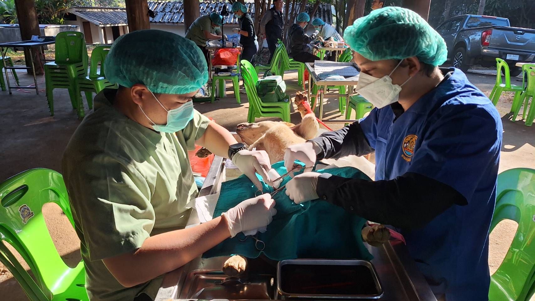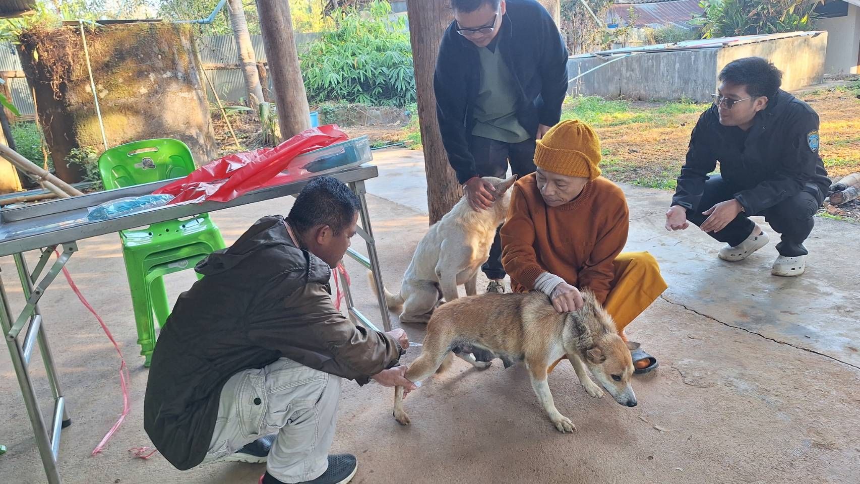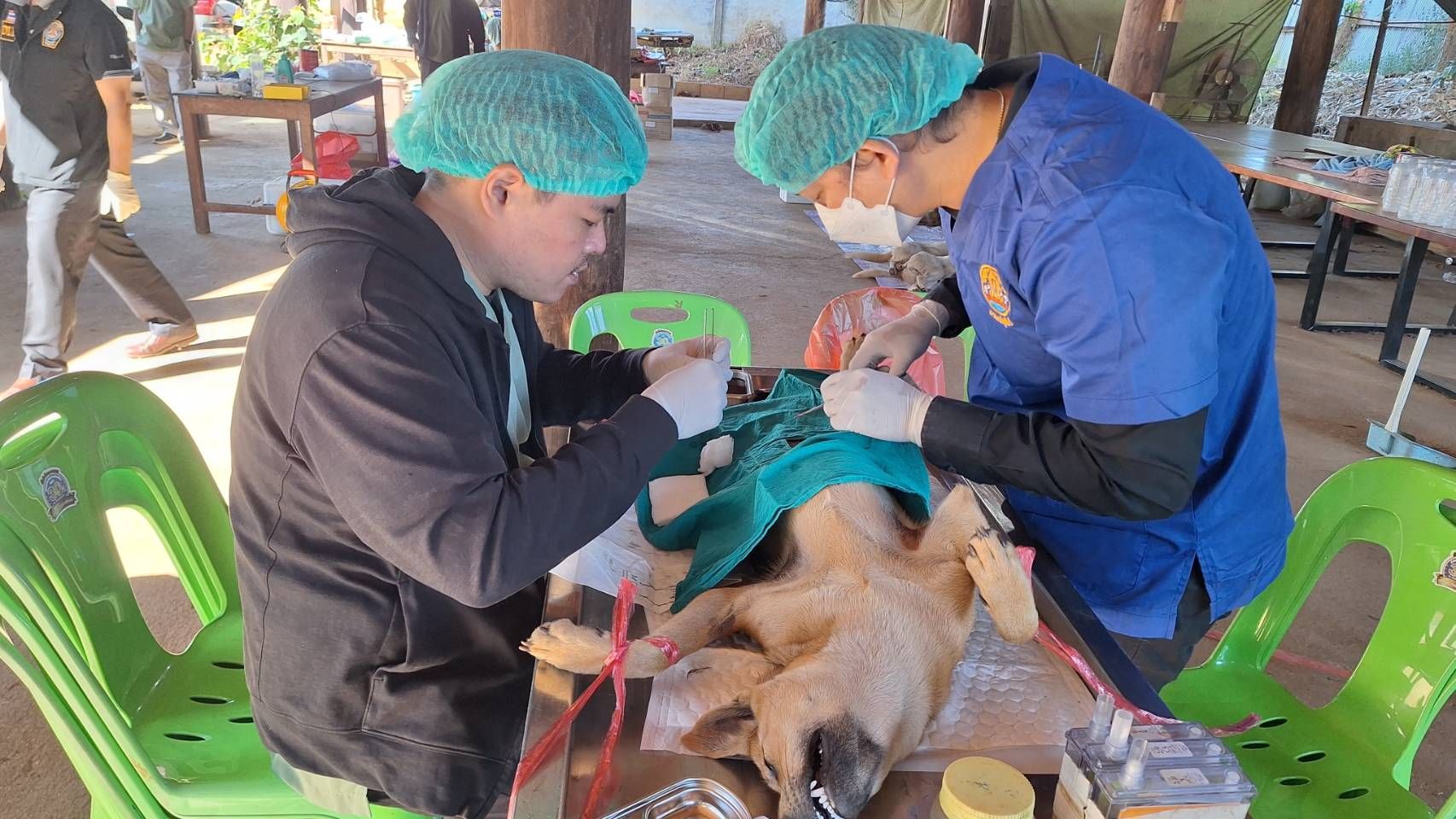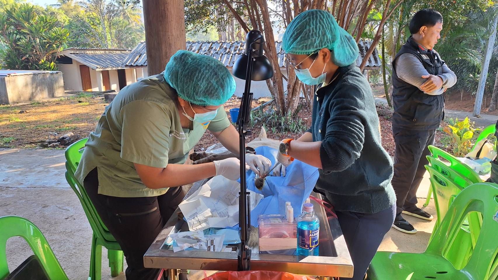 วันที่ 8 มกราคม 2569ณ สำนักสงฆ์เขาวงพระจันทร์ บ้านกล้อทอ ตำบลแม่จัน อำเภออุ้มผาง จังหวัดตาก นายสุชาติ หมอกยา ปศุสัตว์จังหวัดตาก มอบหมายให้กลุ่มพัฒนาสุขภาพสัตว์ ร่วมกับสำนักงานปศุสัตว์อำเภอทุกอำเภอ ด่านกักกันสัตว์ตาก และเทศบาลตำบลแม่จัน ออกดำเนินการผ่าตัดทำหมันและให้บริการด้านการควบคุมโรคพิษสุนัขบ้า ตามโครงการเพิ่มประสิทธิภาพการกระตุ้นภูมิคุ้มกันโรคพิษสุนัขบ้าในพื้นที่เกิดโรคซ้ำซ้อนและพื้นที่เสี่ยงชายแดน ปีงบประมาณ 2569 ภายใต้โครงการ “สัตว์ปลอดโรค คนปลอดภัย จากโรคพิษสุนัขบ้า” ตามพระปณิธาน ศาสตราจารย์ ดร. สมเด็จเจ้าฟ้าฯ กรมพระศรีสวางควัฒน วรขัตติยราชนารี การดำเนินงานในครั้งนี้ประกอบด้วยกิจกรรมผ่าตัดทำหมันสุนัขและแมว การฉีดวัคซีนป้องกันโรคพิษสุนัขบ้าให้กับสุนัขและแมวที่ไม่มีเจ้าของหรือด้อยโอกาส ตลอดจนการประชาสัมพันธ์และให้ความรู้แก่เจ้าของสัตว์และประชาชนทั่วไปเกี่ยวกับโรคพิษสุนัขบ้า เพื่อสร้างความตระหนักและลดความเสี่ยงในการเกิดโรคในพื้นที่ โดยมีประชาชนจากหมู่ที่ 1 หมู่ที่ 2 และหมู่ที่ 4 ตำบลแม่จัน อำเภออุ้มผาง นำสุนัขและแมวเข้ารับบริการเป็นจำนวนมากผลการดำเนินงานสามารถผ่าตัดทำหมันสุนัขเพศผู้จำนวน 23 ตัว สุนัขเพศเมียจำนวน 39 ตัว แมวเพศผู้จำนวน 18 ตัว และแมวเพศเมียจำนวน 27 ตัว รวมทั้งสิ้น 107 ตัว พร้อมทั้งฉีดวัคซีนป้องกันโรคพิษสุนัขบ้าให้กับสุนัขและแมวจำนวน 89 ตัว กิจกรรมดังกล่าวเป็นการบูรณาการความร่วมมือของหน่วยงานในพื้นที่ เพื่อควบคุมและป้องกันโรคพิษสุนัขบ้าอย่างเป็นรูปธรรม เสริมสร้างความปลอดภัยทั้งต่อคนและสัตว์ และขับเคลื่อนนโยบายการจัดการประชากรสุนัขและแมวอย่างยั่งยืน ภายใต้สโลแกน