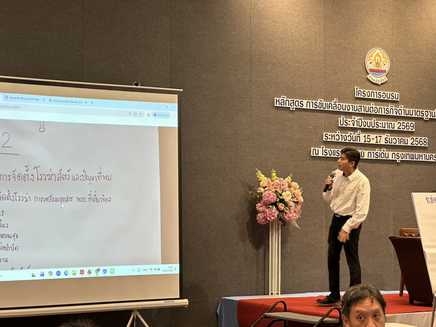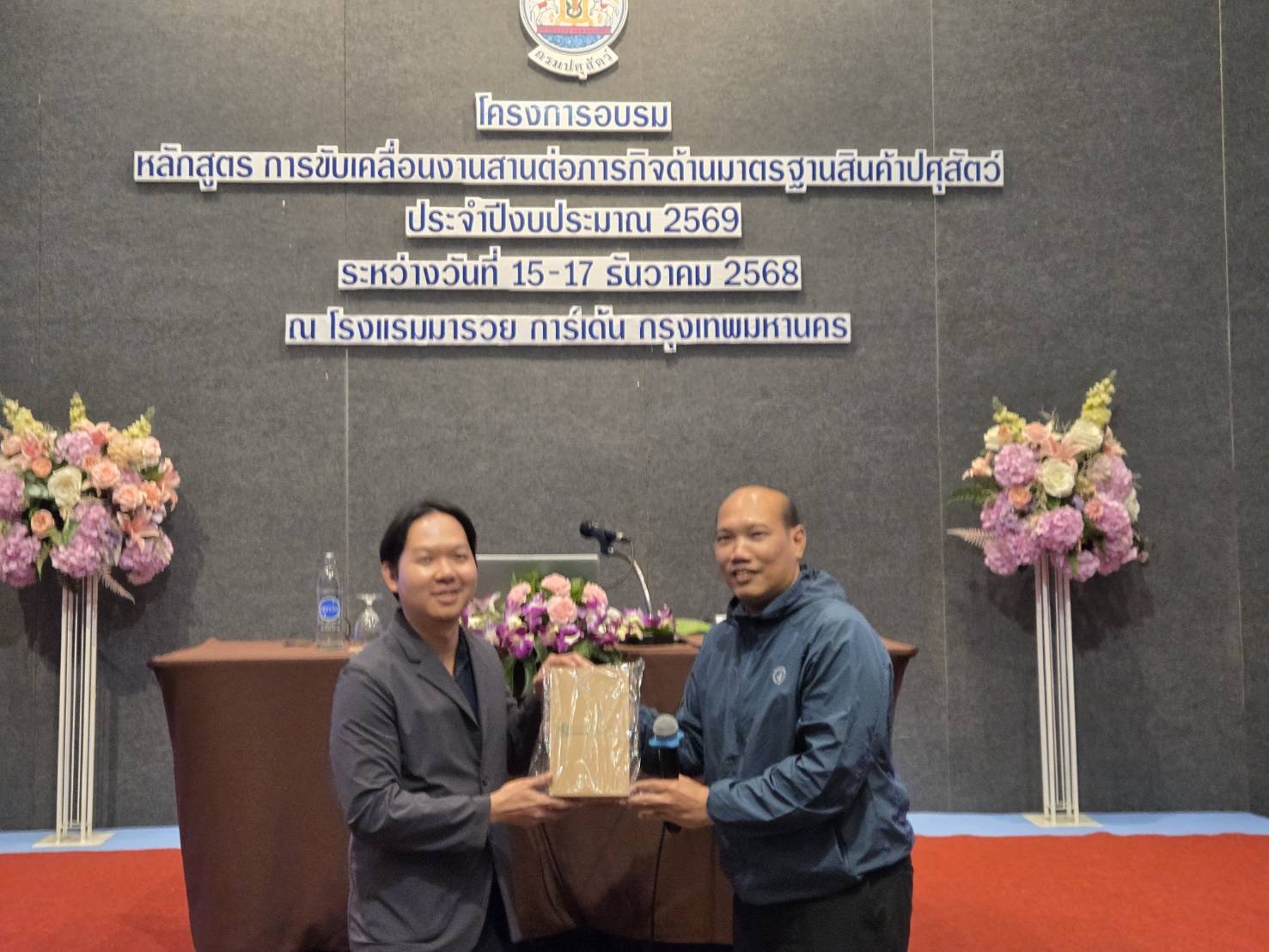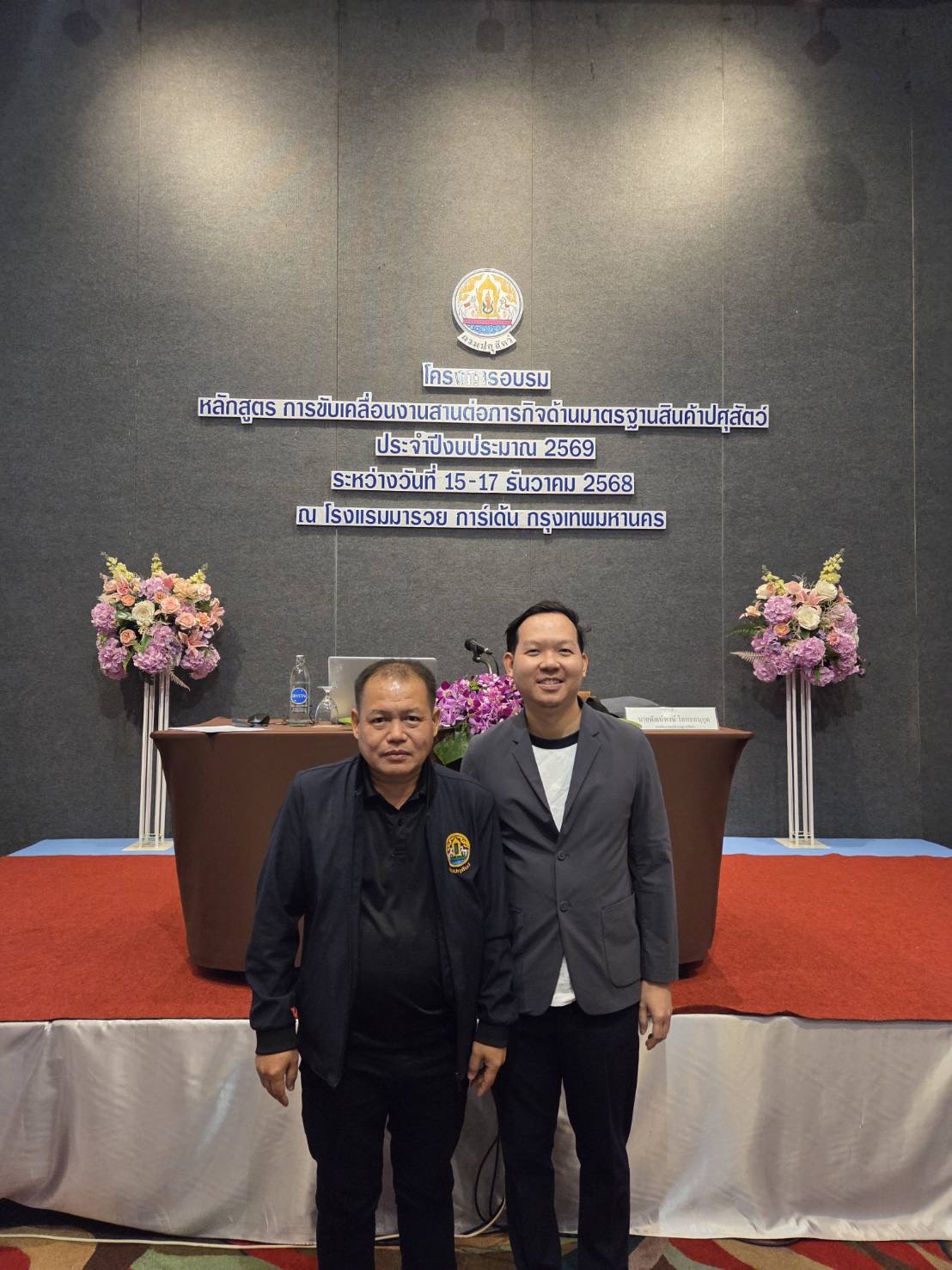 นายสุชาติ หมอกยา ปศุสัตว์จังหวัดตาก มอบหมายให้ นายฉัตรชัย ชาญชัยวีระพันธุ์ นายสัตวแพทย์ชำนาญการ เข้าร่วมโครงการอบรมหลักสูตร “การขับเคลื่อนงานสานต่อภารกิจด้านมาตรฐานสินค้าปศุสัตว์ ประจำปี 2569” จัดขึ้นระหว่างวันที่ 15–17 ธันวาคม 2568 ณ โรงแรมมารวย การ์เด้น กรุงเทพมหานคร โดยมีนายสัตวแพทย์รักไทย งามภักดิ์ รองอธิบดีกรมปศุสัตว์ เป็นประธานในพิธีเปิด โครงการฝึกอบรมฯ ครั้งนี้มีวัตถุประสงค์เพื่อขับเคลื่อนงานด้านมาตรฐานสินค้าปศุสัตว์ให้สอดคล้องกับนโยบายของรัฐบาล มุ่งยกระดับขีดความสามารถด้านการผลิตสินค้าเกษตรให้มีความปลอดภัยตามมาตรฐานสากล พร้อมรองรับการแข่งขันอย่างยั่งยืน
