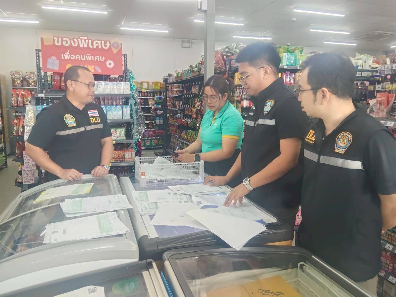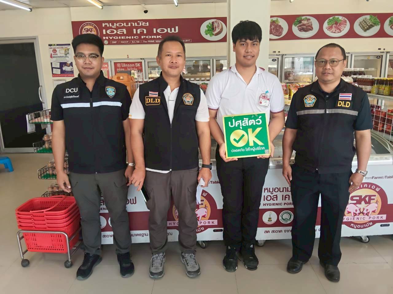 วันที่ 19 กุมภาพันธ์ 2569 เวลา 9.00 น. นายสุชาติ หมอกยา ปศุสัตว์จังหวัดตาก มอบหมายให้กลุ่มพัฒนาคุณภาพสินค้าปศุสัตว์ สำนักงานปศุสัตว์จังหวัดตาก ร่วมกับด่านกักกันสัตว์ตาก เข้าตรวจรับรอง ตรวจต่ออายุ และตรวจติดตามสถานที่จำหน่ายเนื้อสัตว์และไข่สด โครงการเนื้อสัตว์และไข่สดปลอดภัย ใส่ใจผู้บริโภค (ปศุสัตว์ OK) ในพื้นที่อำเภอแม่สอด จังหวัดตาก จำนวน 9 แห่ง โดยตราเครื่องหมายปศุสัตว์ OK เป็นสัญลักษณ์บ่งบอกถึงผลิตภัณฑ์ปศุสัตว์ที่มีมาตรฐาน ได้รับการรับรองจากกรมปศุสัตว์ และสามารถตรวจสอบย้อนกลับถึงแหล่งที่มาได้ ผลการดำเนินการเป็นไปด้วยความเรียบร้อย