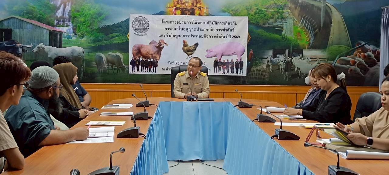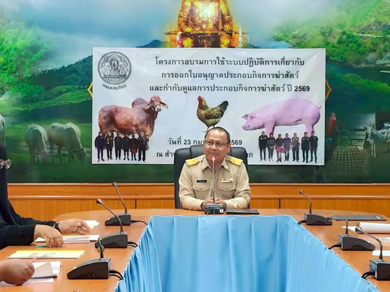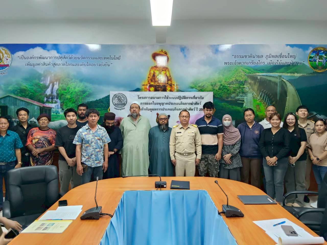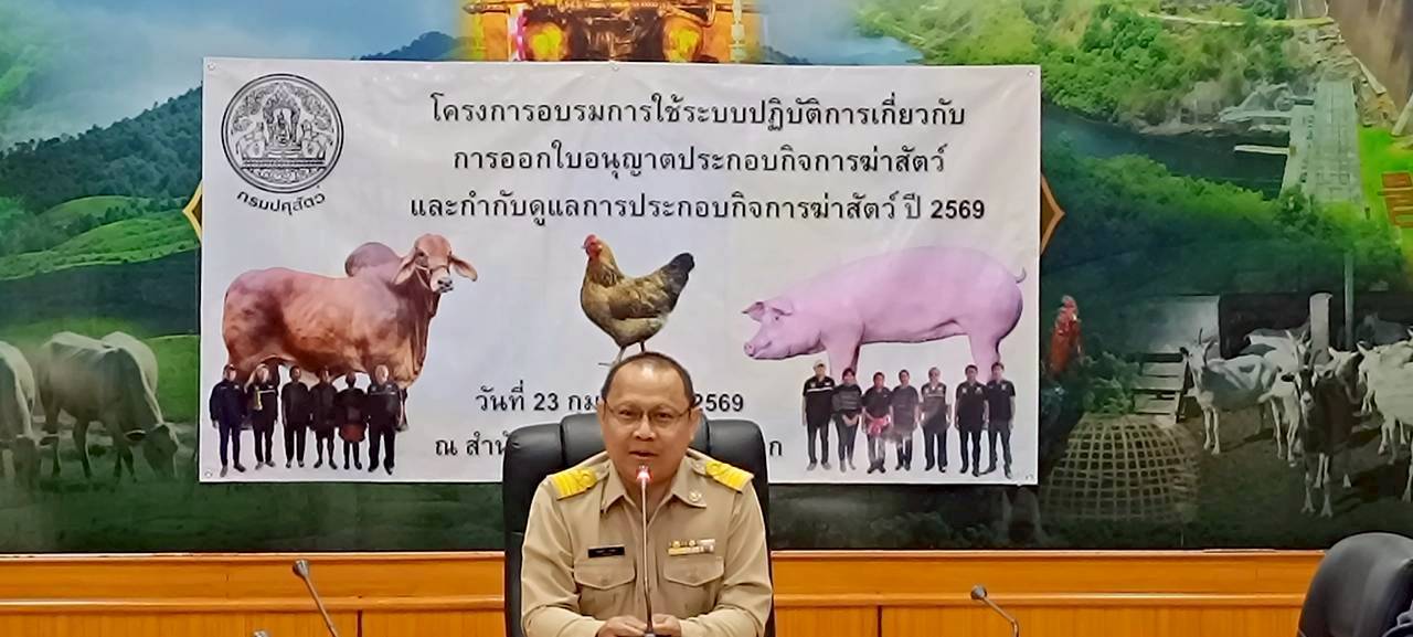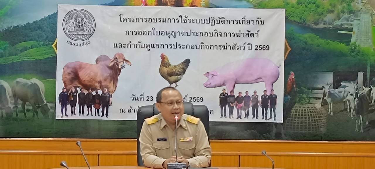 วันที่ 23 กุมภาพันธ์ 2569 เวลา 8.30 น. นายสุชาติ หมอกยา ปศุสัตว์จังหวัดตาก มอบหมายให้กลุ่มพัฒนาคุณภาพสินค้าปศุสัตว์ สำนักงานปศุสัตว์จังหวัดตาก จัดโครงการฝึกอบรม หลักสูตร การใช้ระบบปฏิบัติการเกี่ยวกับการออกใบอนุญาตประกอบกิจการฆ่าสัตว์ และกำกับดูแลการประกอบกิจการฆ่าสัตว์ (Electronic Slaughterhouse Licensing and Inspection Management System : DLD e-SLIMS) มีวัตถุุประสงค์เพื่อให้ผู้ประกอบการโรงฆ่าสัตว์รับทราบและเข้าใจระบบการให้บริการอนุญาตและกำกับดูการประกอบกิจการฆ่าสัตว์ของกรมปศุสัตว์ และสามารถใช้งานระบบบริการอนุญาตและกำกับดูแลการประกอบกิจการฆ่าสัตว์ได้อย่างมีประสิทธิภาพ โดยได้ให้ความรู้เกี่ยวกับการขออนุญาตประกอบกิจการฆ่าสัตว์และการต่ออายุใบอนุญาตให้ประกอบกิจการฆ่าสัตว์ด้วยระบบอิเล็กทรอนิกส์ การตรวจประเมินโรงฆ่าสัตว์ตามกฎกระทรวงการประกอบกิจการฆ่าสัตว์ พ.ศ. 2564 การแจ้งการฆ่าสัตว์และการตอบรับการแจ้งการฆ่าสัตว์ด้วยระบบอิเล็กทรอนิกส์ การตรวจสัตว์ก่อนการฆ่าสัตว์ การตรวจเนื้อสัตว์หลังฆ่า และการรับรองให้จำหน่ายเนื้อสัตว์ โดยมีผู้ประกอบการโรงฆ่าสัตว์เข้าร่วมการฝึกอบรม จำนวน 18 ราย จัดขึ้น ณ ห้องประชุมสำนักงานปศุสัตว์จังหวัดตาก ตำบลระแหง อำเภอเมืองตาก จังหวัดตาก