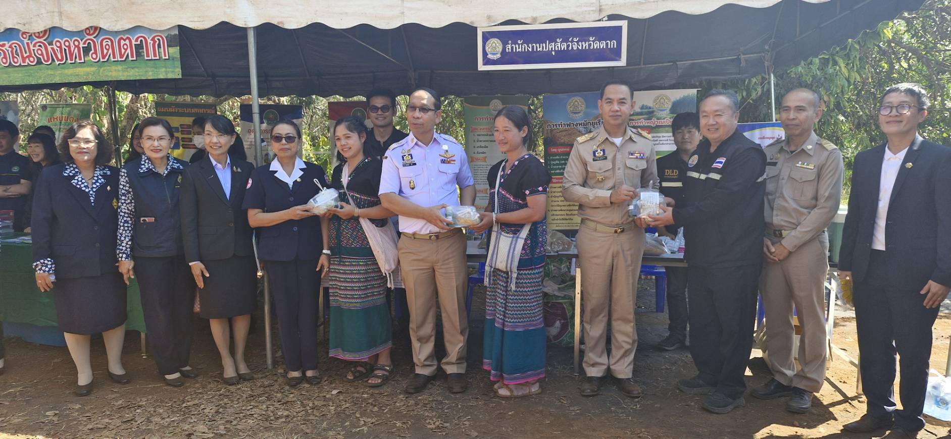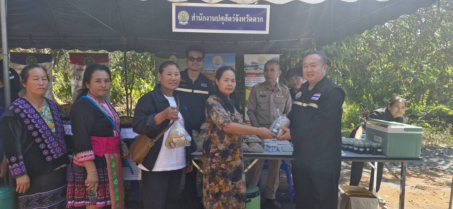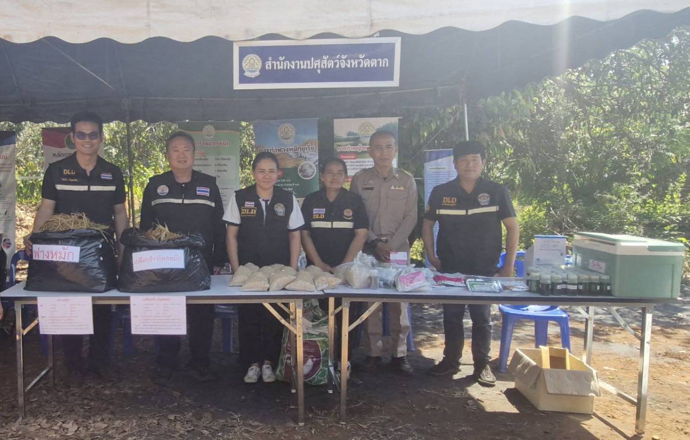 วันที่ 26 มกราคม 2569 นายสุชาติ หมอกยา ปศุสัตว์จังหวัดตาก มอบหมายให้นายทนงชัย กาญจนภิญพงศ์ หัวหน้ากลุ่มยุทธศาสตร์และสารสนเทศการปศุสัตว์ พร้อมด้วยเจ้าหน้าที่สำนักงานปศุสัตว์จังหวัดตาก และสำนักงานปศุสัตว์อำเภอพบพระ เข้าร่วมกิจกรรม “โครงการจังหวัดเคลื่อนที่ หน่วยบำบัดทุกข์ บำรุงสุข สร้างรอยยิ้มให้กับประชาชน จังหวัดตาก” ณ สถานีทดลองพืชสวน กองวิชาการเกษตร (ศาลาทรงงาน) บ้านรวมไทยพัฒนา 1 หมู่ 10 ตำบลรวมไทยพัฒนา อำเภอพบพระ จังหวัดตาก โดยมี นายชูศักดิ์ รู้ยิ่ง ผู้ว่าราชการจังหวัดตาก เป็นประธานในงานดังกล่าว ทั้งนี้ ได้มีกิจกรรมให้ความรู้ด้านการเลี้ยงสัตว์แก่เกษตรกรและประชาชนที่มาร่วมในงาน อาทิเช่น การป้องกันโรคสัตว์, การทำฟางหมัก และการทำเปลือกข้าวโพดหมัก พร้อมทั้งมอบอาหารไก่พื้นเมือง, วิตามินละลายน้ำ, ยาถ่ายพยาธิ, วัคซีนป้องกันโรคปากและเท้าเปื่อย, วัคซีนป้องกันโรคแบลกเลค, วัคซีนป้องกันโรคอหิวาต์เป็ด-ไก่ ฯลฯ