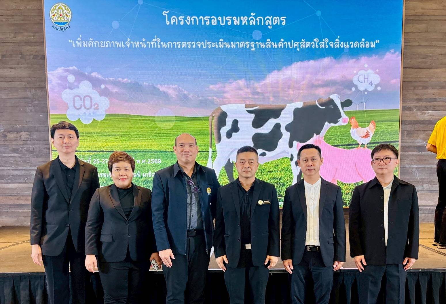 วันที่ 25- 27 กุมภาพันธ์ 2569 นายสุชาติ หมอกยา ปศุสัตว์จังหวัดตาก มอบหมายให้นายมนตรี ภาคะ นายสัตวแพทย์ชำนาญการพิเศษ สำนักงานปศุสัตว์จังหวัดตาก เข้าร่วมโครงการอบรมหลักสูตร "เพิ่มศักยภาพเจ้าหน้าที่ในการตรวจประเมินมาตรฐานสินค้าปศุสัตว์ใส่ใจสิ่งแวดล้อม โดยมีวัตถุประสงค์เพื่อสร้างเสริมความรู้ ความเข้าใจผู้เข้าอบรมเกี่ยวกับแนวคิด หลักการ และแนวทางการตรวจประเมินมาตรฐานสินค้าปศุสัตว์ใส่ใจสิ่งแวดล้อม เสริมสร้างศักยภาพผู้เข้าอบรมในการบูรณาการประเด็นด้านสิ่งแวดล้อมและการจัดการก๊าซเรือนกระจกเข้ากับกระบวนการตรวจประเมินมาตรฐานสินค้าปศุสัตว์ใส่ใจสิ่งแวดล้อม สามารถเชื่อมโยงผลการประเมินคาร์บอนฟุตพริ้นท์กับการตรวจประเมินสินค้าปศุสัตว์ และการให้ข้อเสนอแนะเชิงปรับปรุงแก่สถานประกอบการได้อย่างเหมาะสม จัดอบรมโดยสำนักพัฒนาระบบและรับรองมาตรฐานสินค้าปศุสัตว์ กรมปศุสัตว์ ณ โรงแรมเซ็นทารา ไลฟ์ มาร์ส รีสอร์ท จอมเทียน จังหวัดชลบุรี มีผู้เข้าร่วมอบรม จำนวน 110 คน โดยมีนายสักรินทร์ เนื้อทอง นายสัตวแพทย์ชำนาญการพิเศษ รักษาราชการแทนปศุสัตว์เขต 2 เป็นประธานในพิธีเปิดโครงการอบรม