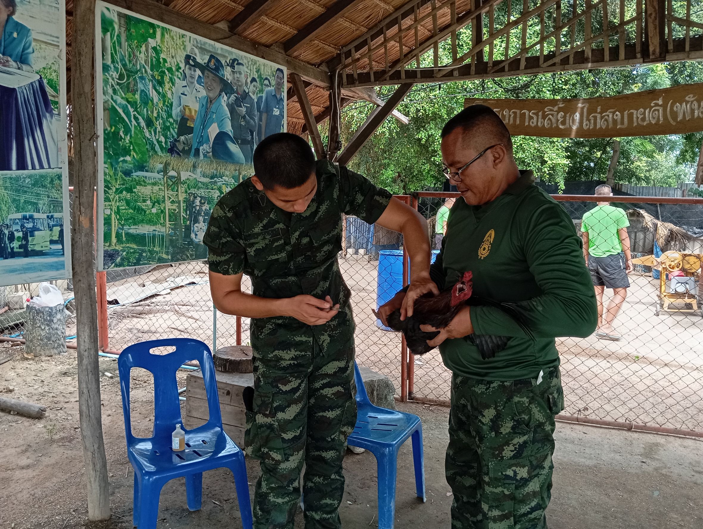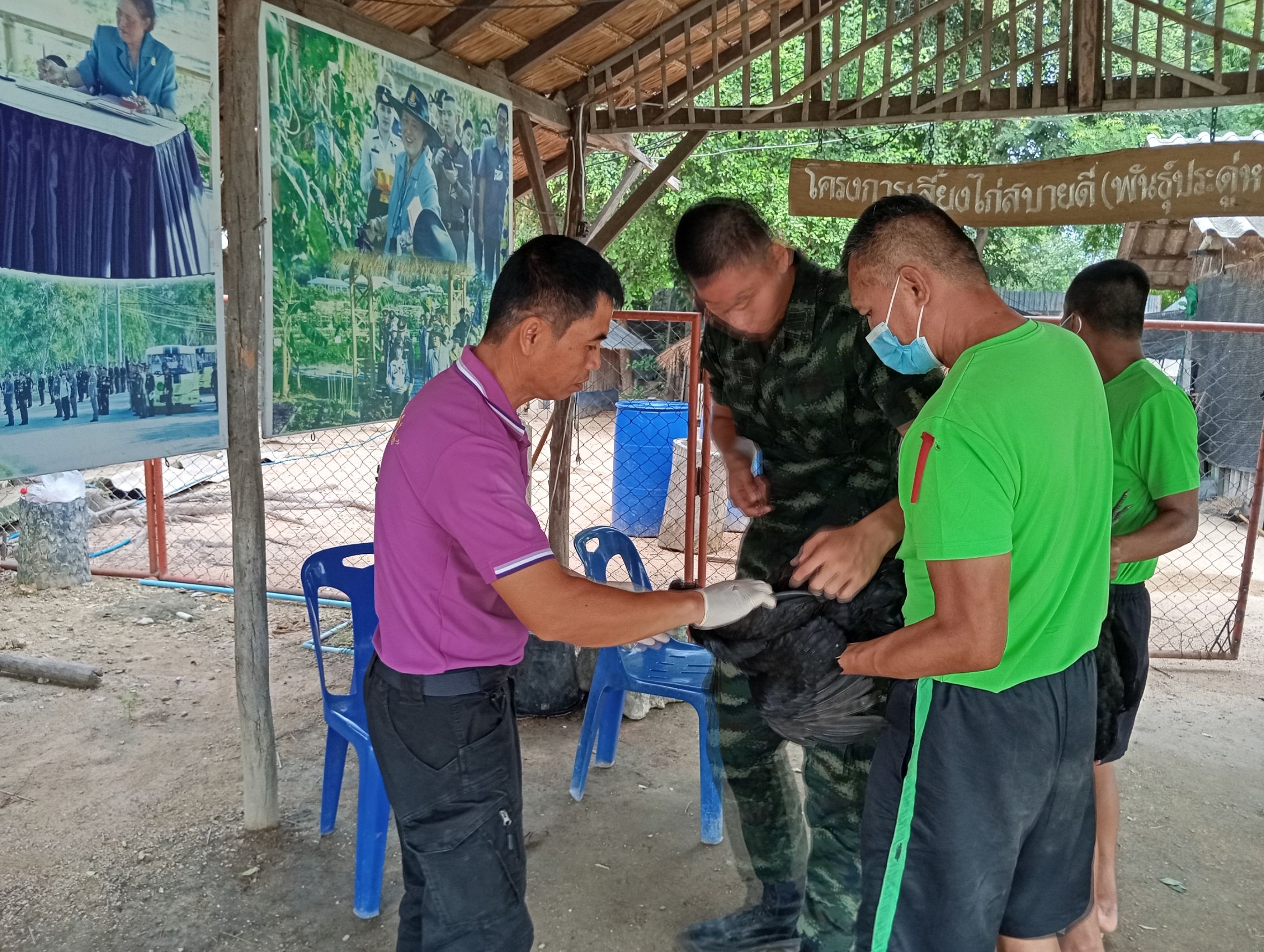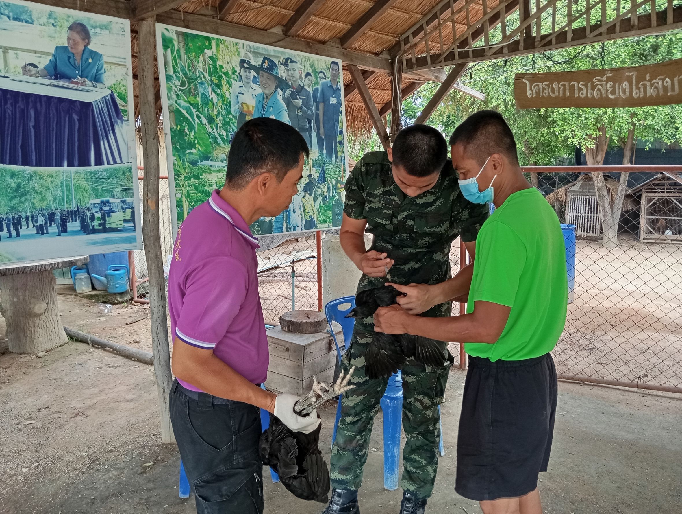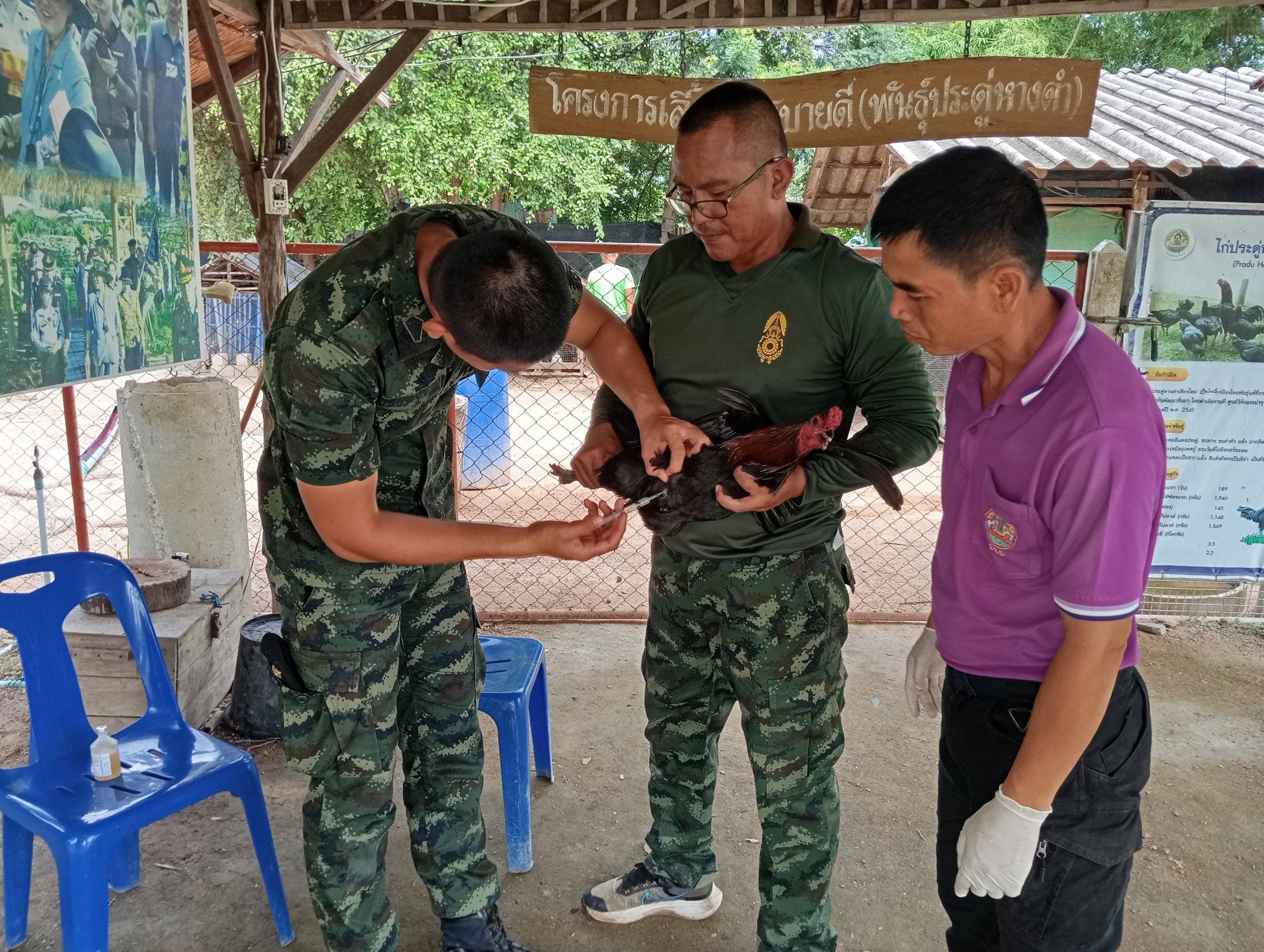 วันที่ 7ตุลาคม 2568 เวลา 09.30 น.นายสุชาติ หมอกยา ปศุสัตว์จังหวัดตาก มอบหมายให้สำนักงานปศุสัตว์อำเภอเมืองตาก ดำเนินการให้ความรู้การทำวัคซีนป้องกันในสัตว์ปีกและให้เจ้าหน้าที่ดูแลโครงการดำเนินการทำวัคซีนในสัตว์เอง พร้อมทั้งให้คำแนะนำวิธีการเลี้ยงสัตว์และการป้องกันโรคระบาดสัตว์แก่ผู้ดูแลโครงการทหารพันธุ์ดี มณฑลทหารบกที่ 310(ค่ายวชิรปราการ)อำเภอเมืองตาก จังหวัดตาก ผลการดำเนินงานไก่ประดู่หางดำ 75 ตัว ไก่ไข่ 20 ตัว เป็ดไข่ 30 ตัว เป็นไปด้วยความเรียบร้อย
