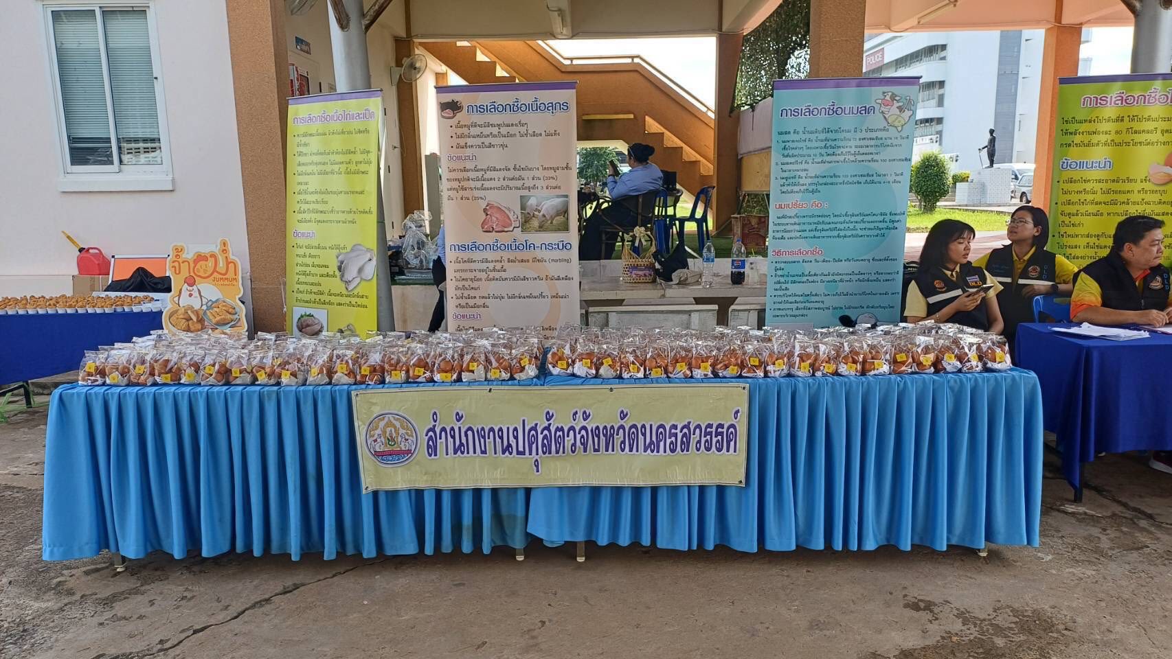 โดยกรมปศุสัตว์ ได้ร่วมจัดนิทรรศการ แจกไข่ไก่ จำนวน 300 ถุง ไก่ทอดจำนวน 30 กิโลกรัม จากผู้ประกอบการ เพื่อให้บริการประชาชน พร้อมทั้งมอบหญ้าอาหารสัตว์พระราชทาน จำนวน 250 ฟ่อน และถุงยังชีพสำหรับสัตว์ จำนวน 12 ถุง ให้กับเกษตรกรผู้ประสบอุทกภัย จำนวน 12 ราย