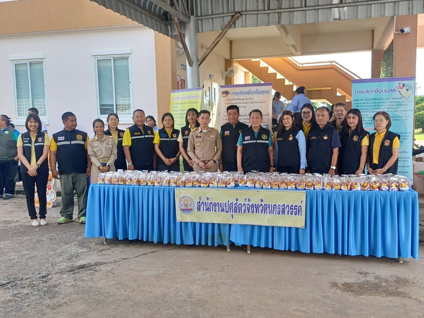 วันพฤหัสบดีที่ 9 ตุลาคม 2568 นายสัตวแพทย์สมชวน รัตนมังคลานนท์ อธิบดีกรมปศุสัตว์ มอบหมายให้นายพงษ์พันธ์ ธรรมมา รองอธิบดีกรมปศุสัตว์ พร้อมนายเทวัญ รัตนะ ปศุสัตว์เขต 6 หัวหน้ากลุ่ม/ฝ่าย สำนักงานปศุสัตว์จังหวัดนครสวรรค์ ปศุสัตว์อำเภอในพื้นที่จังหวัดนครสวรรค์ ร่วมกับศูนย์วิจัยและพัฒนาอาหารสัตว์พิจิตร ด่านกักกันสัตน์นครสวรรค์ สำนักงานปศุสัตว์อำเภอชุมแสง ข้าราชการ และเจ้าหน้าที่สำนักงานปศุสัตว์จังหวัด สำนักงานปศุสัตว์อำเภอชุมแสง ร่วมลงพื้นที่ติดตามร้อยเอก ธรรมนัส พรหมเผ่า รองนายกรัฐมนตรี และรัฐมนตรีว่าการกระทรวงเกษตรและสหกรณ์ พร้อมด้วยรัฐมนตรีช่วยว่าการกระทรวงเกษตรและสหกรณ์ พร้อมด้วยผู้บริหารกระทรวงเกษตรและสหกรณ์ ลงพื้นที่ ณ ที่ว่าการอำเภอชุมแสง จังหวัดนครสวรรค์ พบปะประชาชน และมอบถุงยังชีพให้กับประชาชนที่ได้รับผลกระทบจากอุทกภัยจำนวน 1,708 ชุด โดยมีนายศุภมิตร ชิณศรี ผู้ว่าราชการจังหวัดนครสวรรค์ กล่าวต้อนรับ
