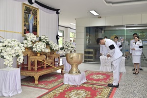 วันที่ 26 ตุลาคม 2568 เวลา 08.00 น. นายสัตวแพทย์สุราษฎร์ สัทธิง ปศุสัตว์จังหวัดอุทัยธานี ที่ห้องโถง ชั้น 1 ศาลากลางจังหวัดอุทัยธานี อำเภอเมืองอุทัยธานี จังหวัดอุทัยธานี นายธีรพัฒน์ คัชมาตย์ ผู้ว่าราชการจังหวัดอุทัยธานี เป็นประธานในพิธีถวายน้ำสรงพระบรมศพเบื้องหน้าพระฉายาลักษณ์ สมเด็จพระนางเจ้าสิริกิติ์ พระบรมราชินีนาถ พระบรมราชชนนีพันปีหลวง โดยมีนายสิทธิชัย เทพภูษา รองผู้ว่าราชการจังหวัดอุทัยธานี นางสาวอังศนา ลุยจันทร์ นายกเหล่ากาชาดจังหวัดอุทัยธานี หัวหน้าส่วนราชการ ศาล ทหาร ตำรวจ ข้าราชการ องค์กรปกครองส่วนท้องถิ่น เจ้าหน้าที่ และพสกนิกรทุกหมู่เหล่า เข้าร่วมพิธีด้วยความสำนึกในพระมหากรุณาธิคุณอย่างหาที่สุดมิได้ในพิธี มีการถวายน้ำสรงพระบรมศพเบื้องหน้าพระฉายาลักษณ์ และลงนามแสดงความอาลัย เพื่อให้พสกนิกรชาวจังหวัดอุทัยธานีได้ร่วมแสดงความอาลัยถวายแด่ สมเด็จพระนางเจ้าสิริกิติ์ พระบรมราชินีนาถ พระบรมราชชนนีพันปีหลวง ซึ่งเป็น “แม่ของแผ่นดิน” ที่ปวงชนชาวไทยเทิดทูนเหนือเกล้าเหนือกระหม่อม