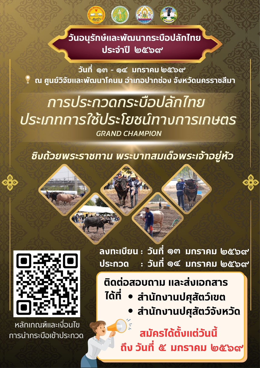 การประกวดกระบือปลักไทย ประเภทการใช้ประโยชน์ทางการเกษตร GRAND CHAMPION