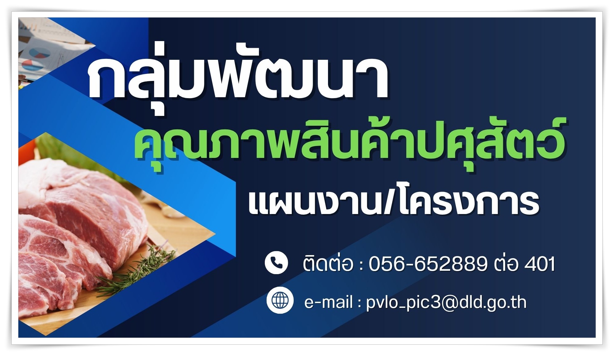 กรมปศุสัตว์  "เป็นองค์กรพัฒนาการปศุสัตว์ด้วยนวัตกรรมและเทคโนโลยี เพิ่มมูลค่าสินค้าสู่ตลาดโลกและเติบโตอย่างยั่งยืน"