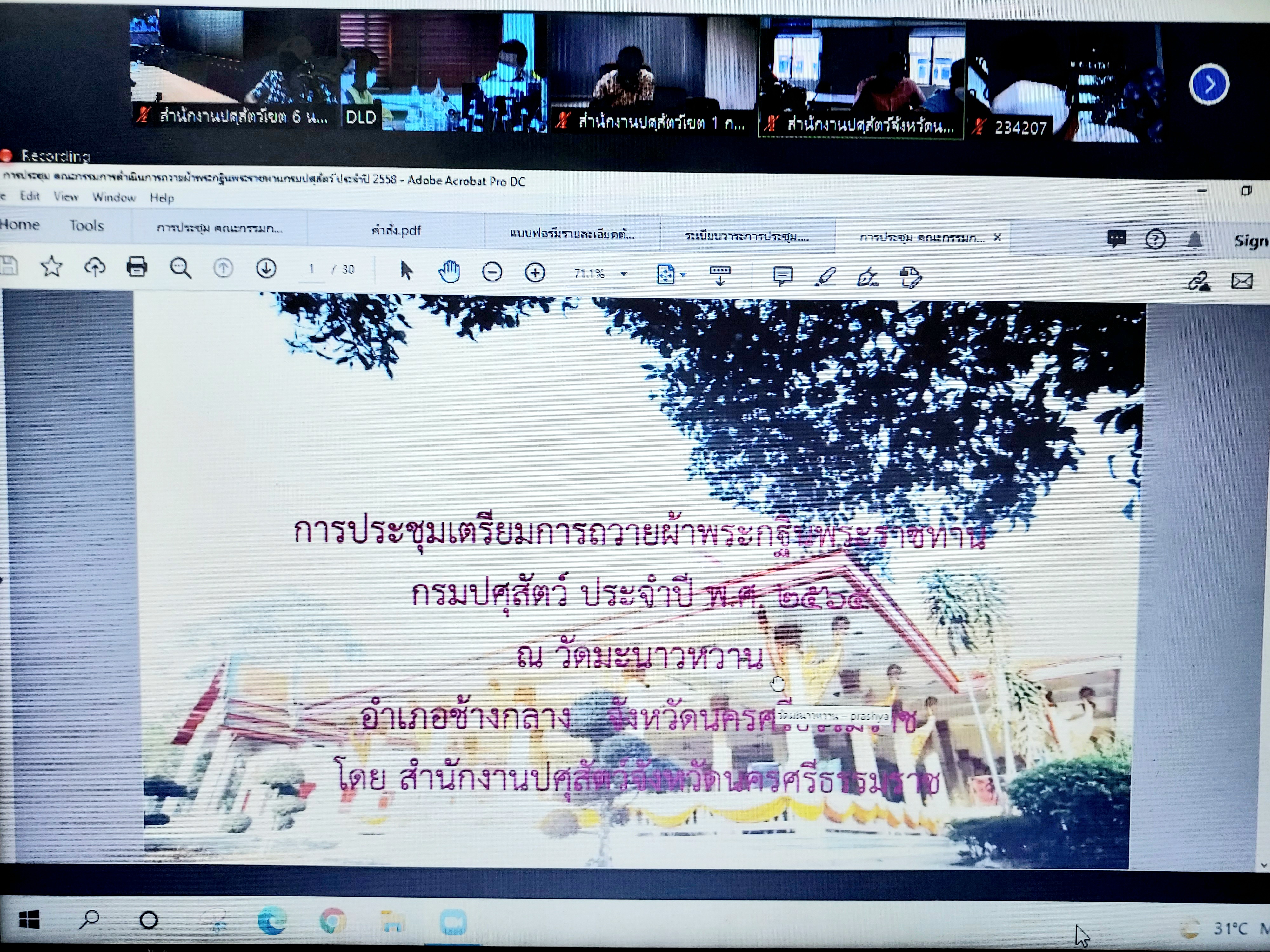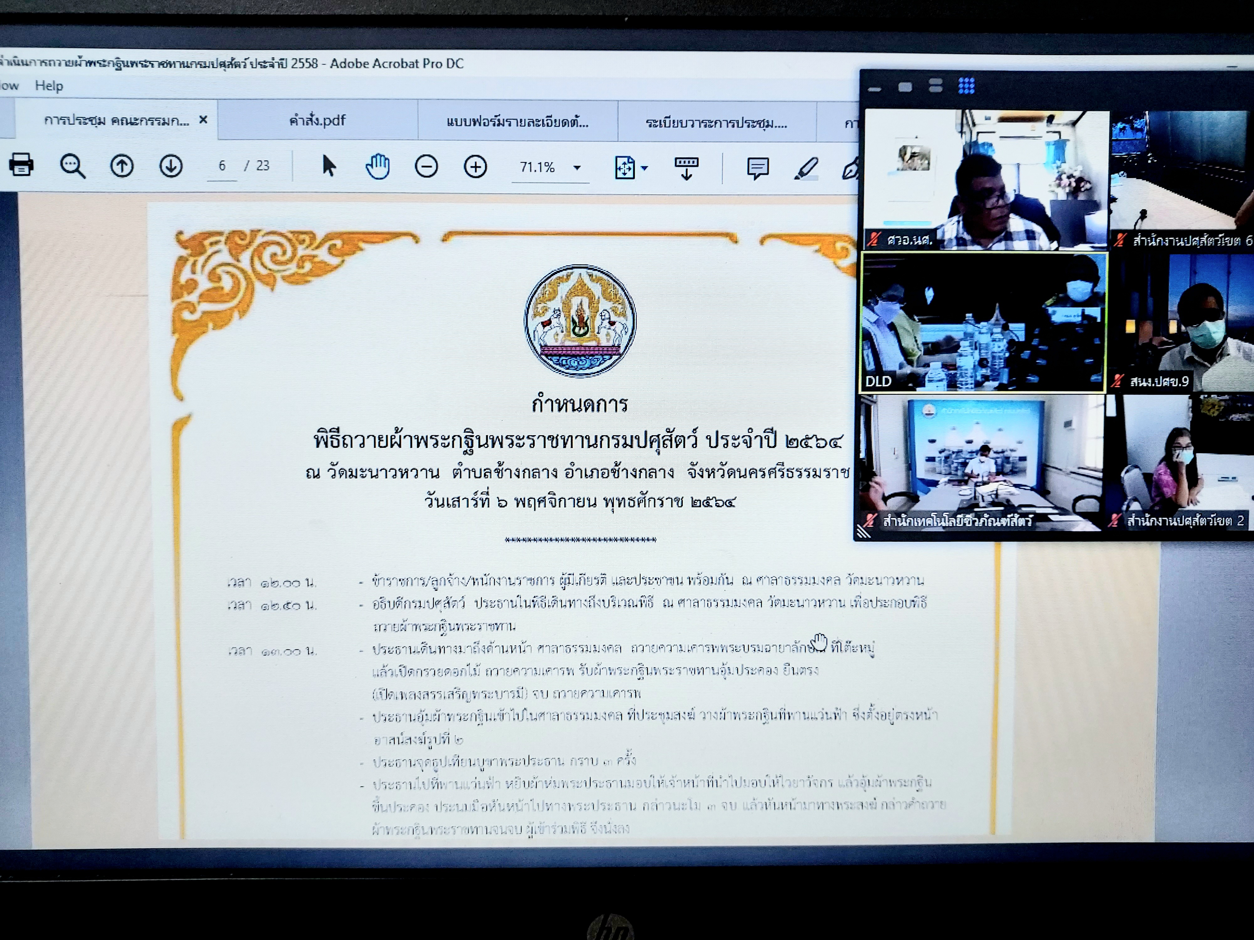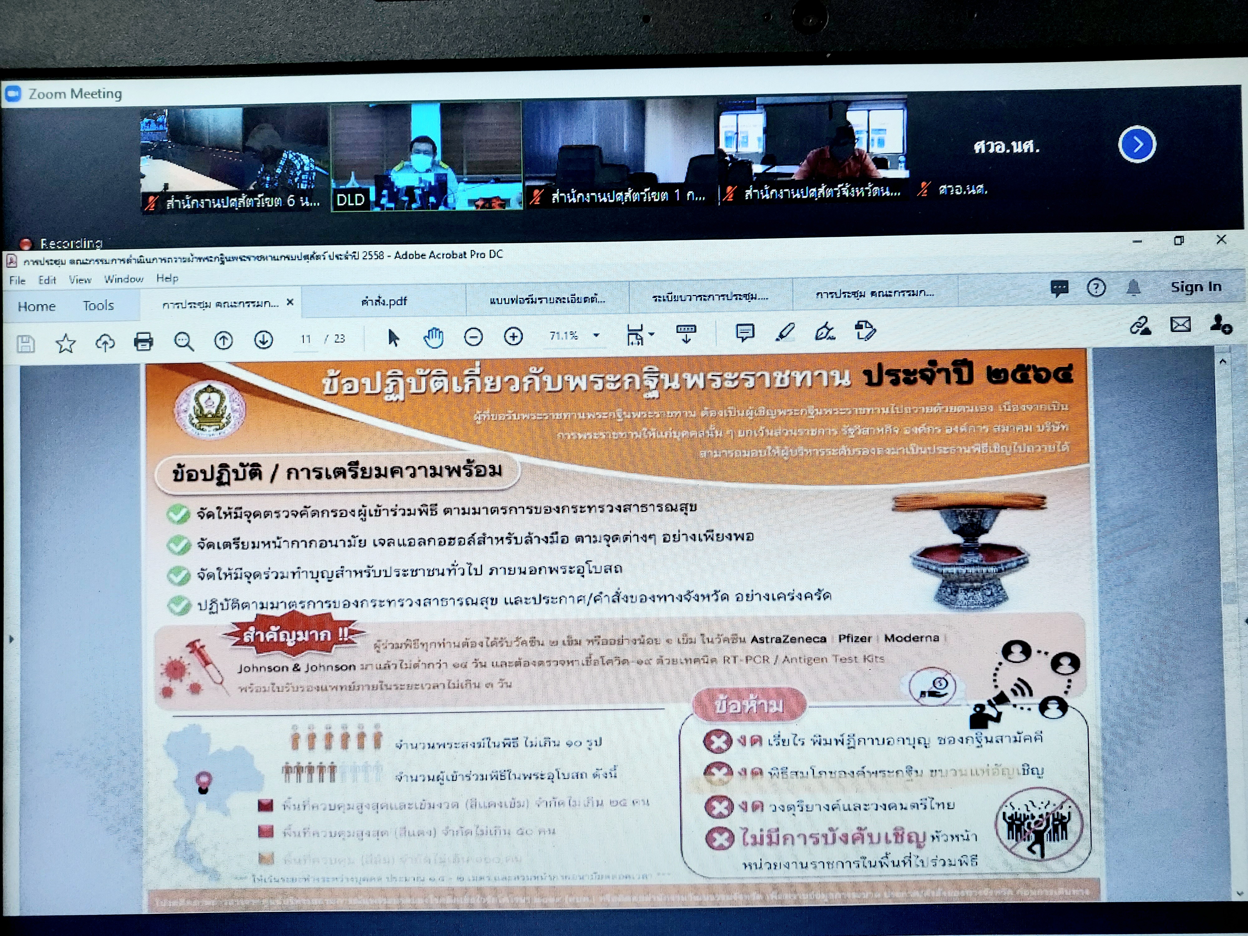 วันที่ 26 ตุลาคม 2564 เวลา 13.00 น สำนักงานปศุสัตว์ เข้าร่วมประชุมคณะกรรมการดำเนินการถวายผ้าพระกฐินพระราชทานกรมปศุสัตว์ประจำปี 2564 ผ่านทางระบบ Zoom Conference ณ ห้องประชุมสำนักงานปศุสัตว์เขต 6 (ห้องเหลืองหางขาว) อำเภอเมือง จังหวัดพิษณุโลก